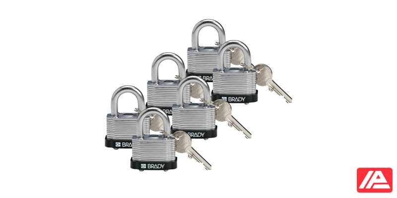 Τα λουκέτα Brady Steel Padlocks είναι κατασκευασμένα από ενισχυμένο πολυστρωματικό ατσάλι για να αντέχουν σε σοβαρή φυσική κακοποίηση και διαθέτουν ατσάλινο αγκύλιο με σκλήρυνση που τα καθιστά εξαιρετικά δύσκολο να κοπούν. Οι πλάκες σώματος είναι ξεχωριστά επικαλυμμένες για ανώτερη προστασία από τη σκουριά. Ο κύλινδρος 5 ακίδων προσφέρει περισσότερες μοναδικές κοπές κλειδιών και καλύτερη αντίσταση στην παραβίαση από τις συμβατικές κλειδαριές 4 ακίδων. Μπορούν να χρησιμοποιηθούν έγχρωμοι προφυλακτήρες για αναγνώριση και προστασία και διατίθεται προσαρμοσμένη σφράγιση. Τα λουκέτα διατίθενται με διαφορετικά κλειδιά. Κλειδί συγκράτησης (το κλειδί δεν θα απελευθερωθεί μέχρι να κλείσει καλά η αγκύλη του λουκέτου)
