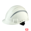 Για προστασία του κεφαλιού σε σκληρές συνθήκες, χρησιμοποιήστε την σειρά 3M™ Hard Hat Series G3000. Τα κράνη πληρούν τις απαιτήσεις του προτύπου EN 397:212+A1:2012 με το λουρί περιστρεφόμενο κατά 180° (από πίσω προς τα εμπρός). Το κράνος μας διατίθεται με pinlock ή ratchet ανάρτηση και πλαστικό ή δερμάτινο στήριγμα για τον ιδρώτα. Διαθέτει απαλό στρογγυλεμένο σχεδιασμό που προσφέρει καλό οπτικό πεδίο και βοηθά στην αποφυγή εμπλοκής σε καλώδια ή κλαδιά. Διατίθεται με ή χωρίς οπές εξαερισμού που είναι κατανεμημένες σε μεγάλη επιφάνεια και προσφέρουν μέγιστη ροή αέρα, αυξάνοντας την άνεση του χρήστη. Η κοντή γείσο προσφέρει βελτιωμένη ορατότητα προς τα πάνω και ένας αισθητήρας 3M™ Uvicator™ σας ενημερώνει όταν το κράνος σας έχει εκτεθεί υπερβολικά στην υπεριώδη ακτινοβολία και είναι ώρα να το αντικαταστήσετε. Η ζώνη κεφαλής μπορεί να περιστραφεί 180° για καλύτερη ορατότητα όταν εργάζεστε σε περιορισμένους χώρους. Τα κράνη πληρούν τις απαιτήσεις EN 397:212+A1:2012 με τη ζώνη περιστραμμένη κατά 180° (από πίσω προς τα εμπρός) και οι ηλεκτρικά μονωμένες εκδόσεις πληρούν την EN 50365:2002 για χρήση σε εγκαταστάσεις χαμηλής τάσης.