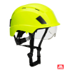 Σας παρουσιάζουμε το καινοτόμο και κομψό κράνος ασφαλείας μας, εξοπλισμένο με ενσωματωμένο γείσο για εύκολη χρήση. Το γείσο μπορεί να αναδιπλωθεί εύκολα στο κέλυφος του κράνους, εξασφαλίζοντας ασφαλή αποθήκευση όταν δεν χρησιμοποιείται. Με διπλή πιστοποίηση (EN 397 και EN 12492), αυτό το κράνος προσφέρει ευελιξία και πολυχρηστικότητα με δύο επιλογές ιμάντα για το πηγούνι. Το αεριζόμενο κέλυφος του κράνους επιτρέπει τη βέλτιστη ροή αέρα, παρέχοντας ένα δροσιστικό αποτέλεσμα κατά τη χρήση. Στο εσωτερικό του κελύφους, ο αφρός EPS ενισχύει την άνεση και εξασφαλίζει μεγαλύτερη ασφάλεια.